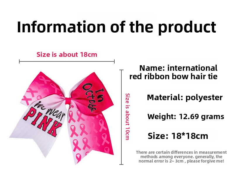 Breast Cancer Awareness Cheer Bow Pink Cheer Bows Large Pink Ribbon Hair Bows Hair Tie Ponytail Holder Hair Accessories for Breast Cancer Month