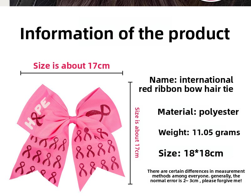 Breast Cancer Awareness Cheer Bows Pink Ribbon Cheerleaders Hair Bow Tie with Elastic Bands Ponytail Holder Hair Accessories for Women Girls Wholesale