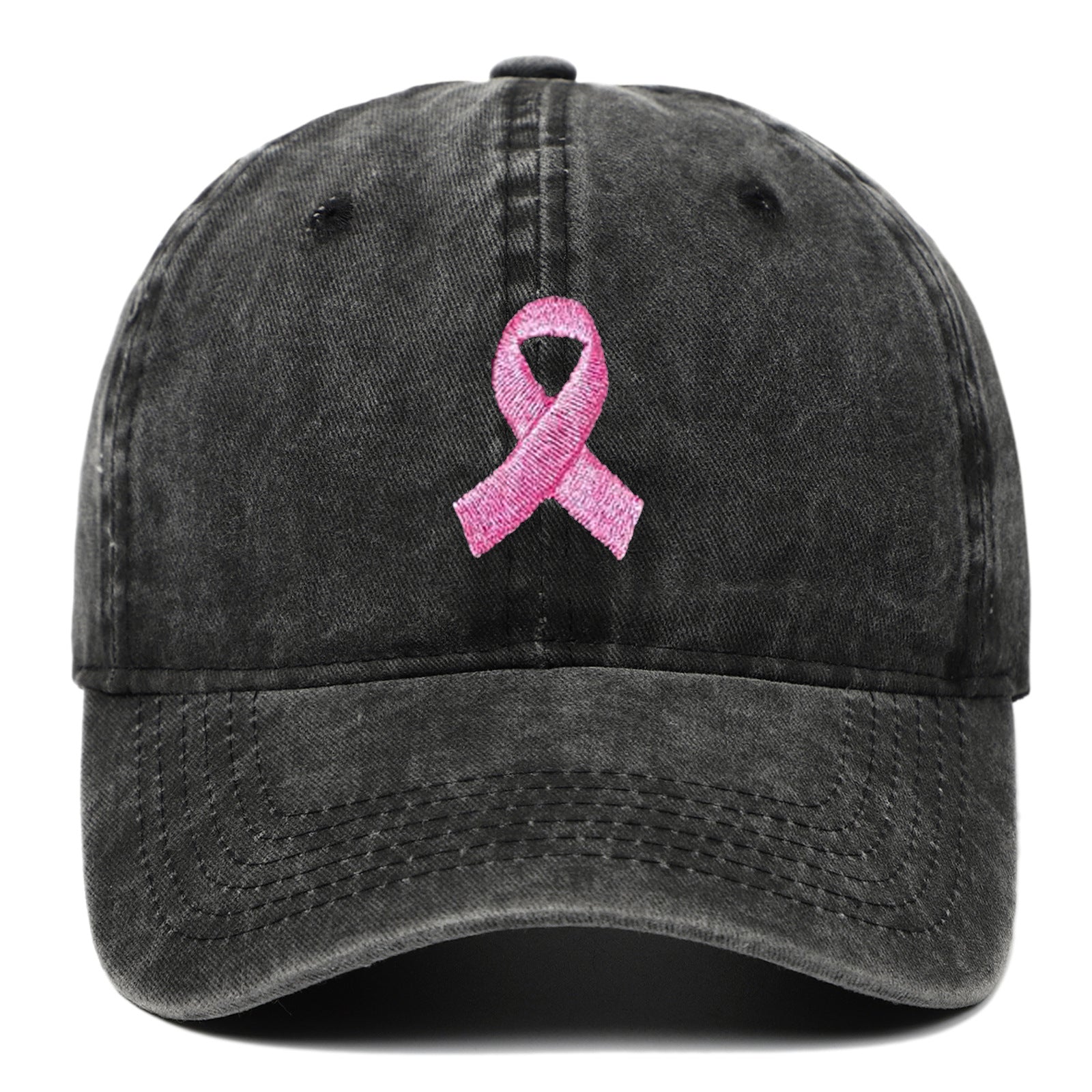 Breast Cancer Awareness Pink Ribbon Embroidered Baseball Cap, Washed Cotton Snapback, Unisex Outdoor Casual Sun Hat Hair Accessories